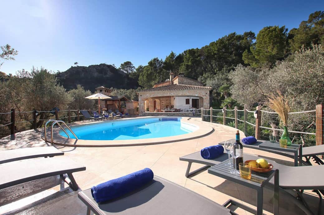 Vila renovada el 2024. Situada en un oliverar de més de 1000 anys d'antiguitat, aquesta casa rústica amb fantàstiques vistes cap a les diferents valls de Pollença ens ofereix un ambient tranquil i privat a una de les zones més boniques del poble de Pollença. S'arriba a la casa per un camí privat estret. Entrant a la casa ens trobem amb una àmplia entrada i un arc de marès que separa l'espaiós saló menjador, que té parets de pedra, una gran xemeneia i TV/DVD. La cuina està totalment equipada amb microones, rentavaixelles, forn elèctric, nevera/congelador i un rebost. A la cuina podem trobar també una porta que s'obre a l'exterior, concretament a la terrassa coberta des d'on podem accedir directament a la zona de la piscina. Des del saló hi ha un altre arc interior que ens dóna accés a una habitació de matrimoni en suite i, a més, al costat del saló hi ha un altre bany amb mitja banyera. Una escala ens porta a la planta superior on s'ubiquen la resta de les habitacions. Aquestes consisteixen en dues habitacions de matrimoni (una té bany de dutxa en suite) i dues boniques habitacions dobles. Aquí en pujar l'escala hi ha un altre bany amb dutxa. En aquesta mateixa planta es troba també una terrassa des de la qual podem gaudir d´unes espectaculars vistes a les muntanyes i valls del voltant. La zona de la piscina i terrasses estan totalment equipades amb mobles de jardí. També a l'exterior trobem una barbacoa de material ideal per preparar sopars o dinars a l'aire lliure envoltats d'un ambient totalment natural, tranquil i ple de pau. Finalment, cal destacar que vila Alordes disposa de connexió gratuïta a Internet via Wi-Fi. -