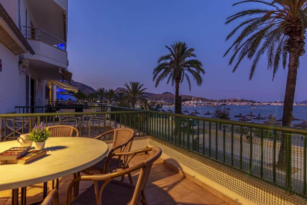 Este fabuloso apartamento goza de una localización privilegiada ya que se encuentra en primera línea del Puerto de Pollença. La playa está justo enfrente, las vistas a la bahía son magníficas, y la variada oferta de restaurantes y tiendas está a pie de calle al estar en pleno corazón del paseo marítimo. Al acceder al apartamento nos da la bienvenida un salón comedor con cocina abierta, la cual está completamente equipada con vitrocerámica, lavavajillas, microondas y una gran nevera. La estancia es agradable y acogedora gracias a su natural luminosidad y a su cómodo mobiliario. Desde el salón se tiene acceso a la terraza privada, provista de mesa y sillas para el disfrute de comidas y charlas de sobremesa ante las espléndidas vistas que ofrece